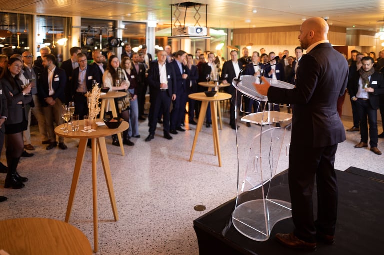 For this inauguration, we designed an elegant environment that reflected the company's identity and values. From mood lighting to personalized staging, every detail was thought out to welcome guests, highlight key moments and leave a lasting professional impression.
